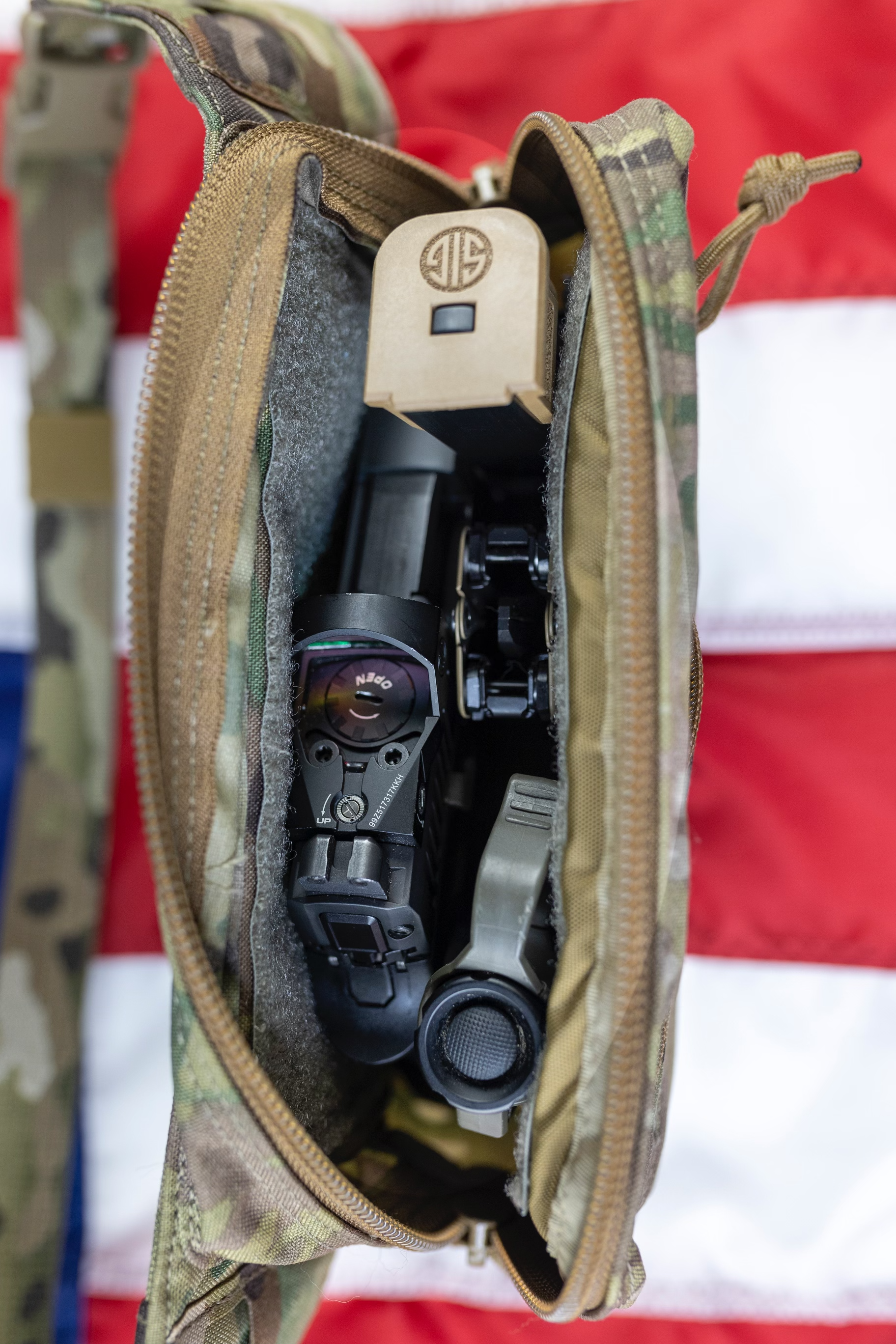 Seems very durable and well padded. I can fit my M&P 2.0 compact in a Trex Arms sidecar holster with the sidecar attached in the vertical position allowing me to carry as I normally would if I’m not dressed for the occasion. I use it mostly to consolidate all my EDC items so I can grab it and go and not have all my pockets stuffed. Easily holds my iPhone mini, full sized Leatherman multitool, compact flashlight, full sized TQ, wallet, lighter, and a mini med kit with some room to spare. I went with Tiger Stripe as it breaks up the contours well without screaming tactical-camo to normies while out in public. Looks more Hawaiian print than tactical to the untrained eye.